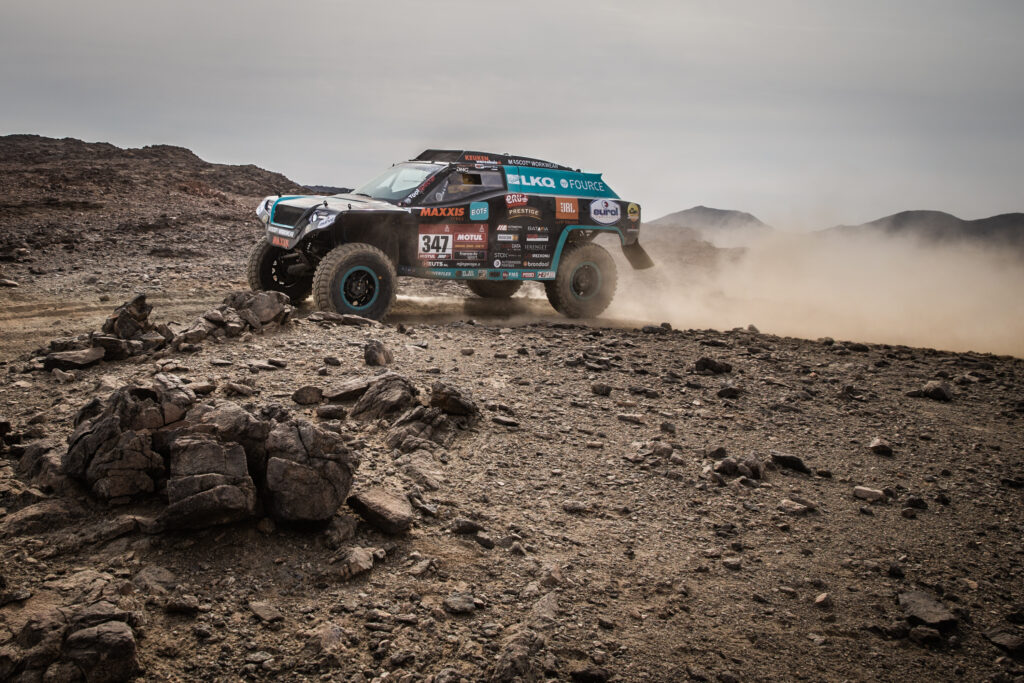 In het eerste stuk van de etappe zat The Beast een paar keer vast in het stof van de trucks. “Een Kamaz met name”, zegt Tom. “Als die voorbij komt – en op dat stuk waren ze gewoon sneller – zie je even helemaal niks meer. Dan moet je wel van het gas af, anders gebeuren er ongelukken. We hebben onderweg twee auto’s zien liggen die zo plat als een dubbeltje waren.”