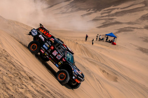 SAN JUAN DE MERCONA – De Dakar Rally 2018 verloopt voor Tim en Tom Coronel nog niet geheel vlekkeloos. De eerste dag kreeg de populaire tweeling te maken met remproblemen en een oververhitte motor. Die koelproblemen waren op de tweede dag nog niet geheel verholpen. Bovendien stond het duo enkele malen vast in het mulle zand van de schier eindeloze zandduinen van Peru. Op dag 3 ging het wederom mis en moesten de broers de nacht doorbrengen in de woestijn. Nachtelijke avonturen hebben ze de voorbije Dakar-edities al regelmatig meegemaakt dus dat was verder geen probleem, maar Tim en Tom hadden toch liever het bivak gehaald.