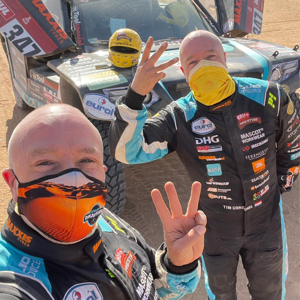 Het was hard werken voor The Beast in de derde etappe van de Dakar 2021. En dus ook voor Tim en Tom Coronel. In de lus van 403 km bij Wadi Ad-Dawasir kregen ze te maken met een bijzonder gevarieerd landschap, dat het uiterste vergde van mens en machine. “We zeuren wel eens, maar hier komen we voor”, zei Tom. “Dit is the real thing.”