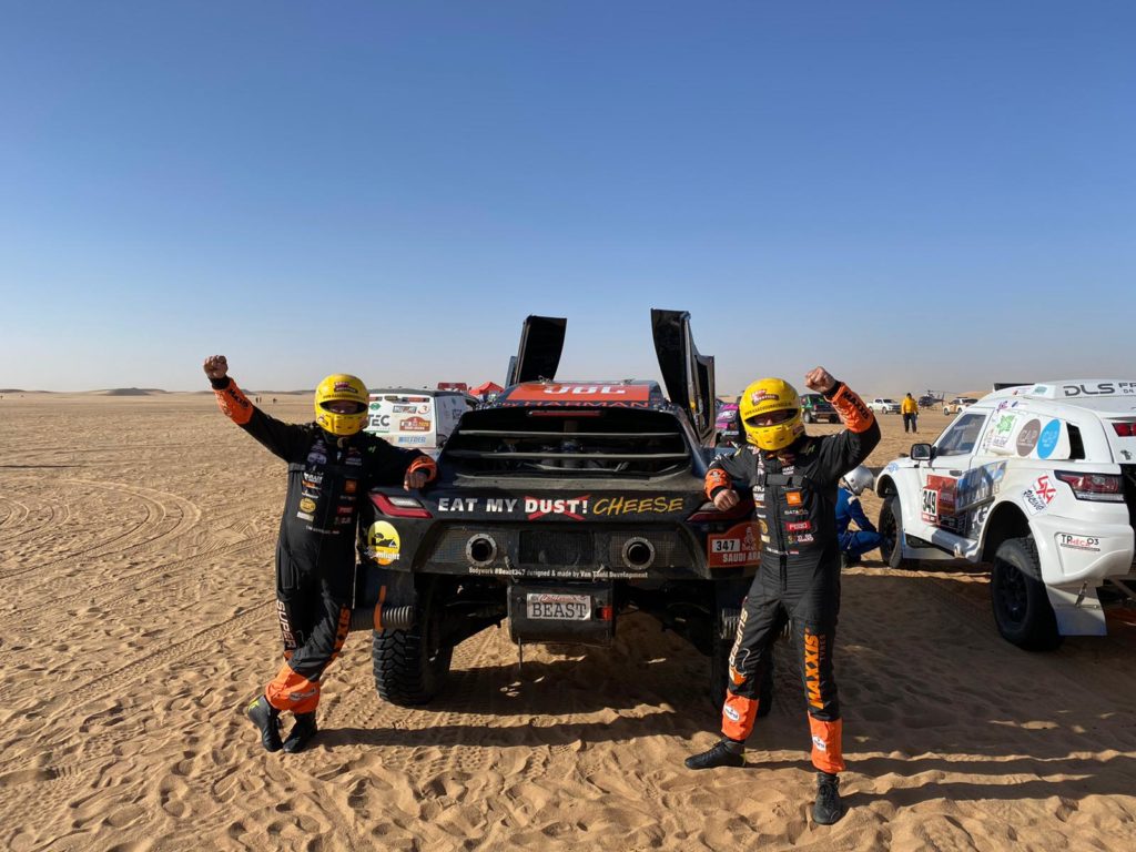 As usual, Tim was behind the wheel of The Beast 3.0 and he explains what happened: “There was a stone of one metre by one metre that suddenly got in our way. We hit it quite hard, so the entire lower right rear section was gone. Fortunately, we were able to continue after some repair work. The car wasn’t really going straight, we were really driving like a crab, but after a while, we simply started pushing again and we managed to bring it home. Too bad about that rock, because apart from that, it went really well. This was one of those old-fashioned stages worthy of the Dakar Rally.”