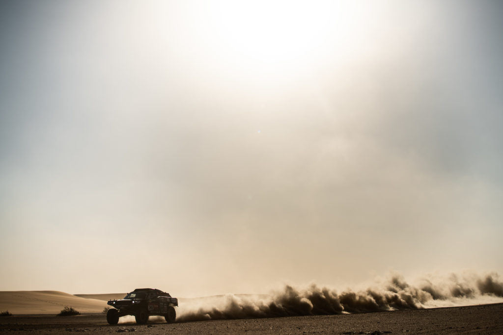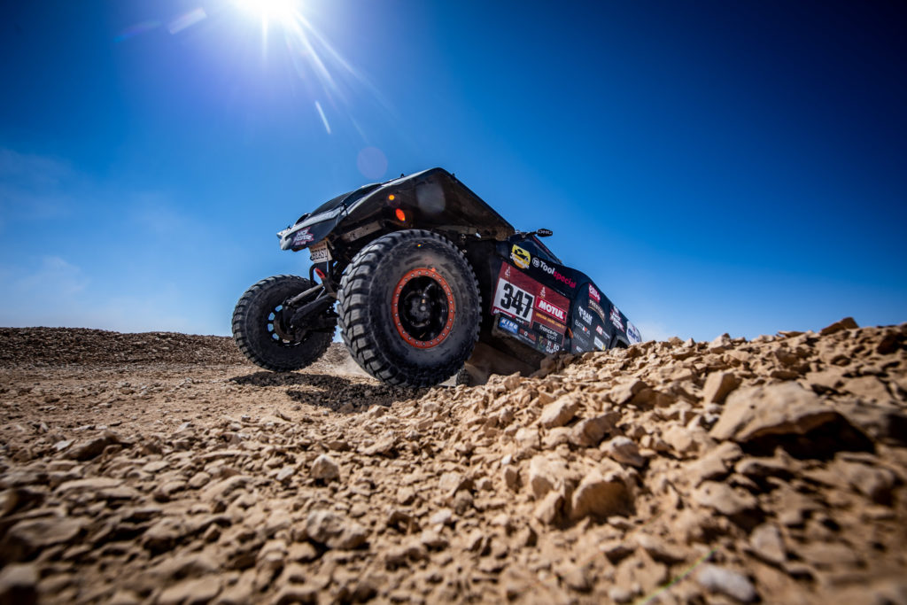 SHUBAYTAH – For the third consecutive day, Tim and Tom Coronel didn’t make it through the Dakar stage without damage. In the shortened tenth stage, the duo rolled their car, The Beast 3.0. Due to a huge sand storm, the stage was stopped early and the competitors were allowed to take the public road to reach the bivouac.