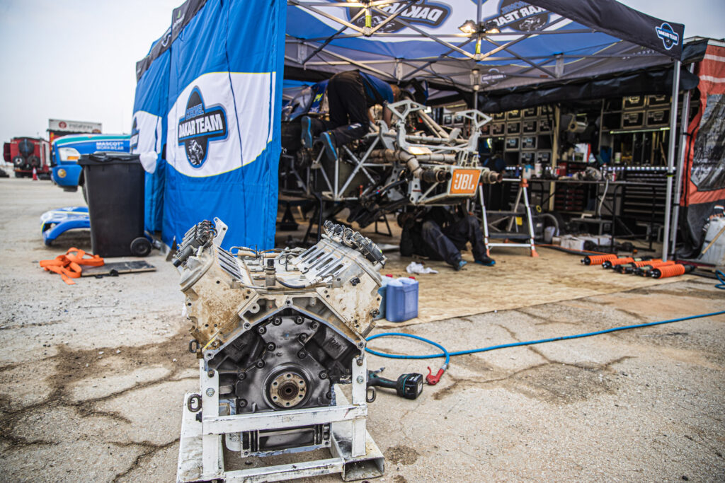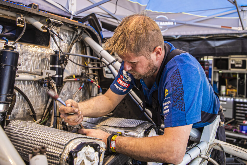 The Century’s engine popped en route from the stage’s finish to the bivouac in Riyadh. Tim and Tom reached that bivouac again on tow behind a truck. The mechanics thought that the rest day alone was not enough and started immediately at midnight, after Tim and Tom had arrived. “Before they went to sleep, they had already removed the engine,” says Tim.