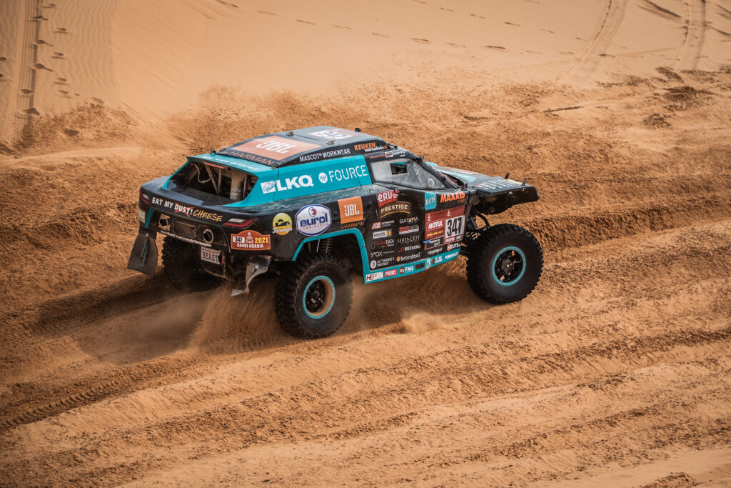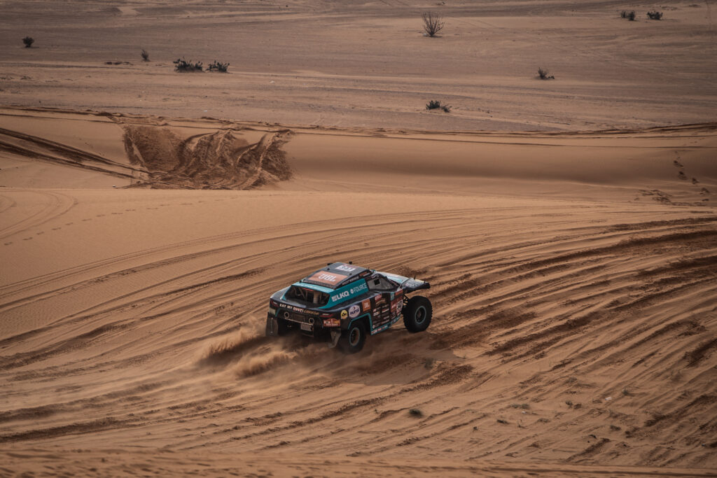 De etappe naar Al Qaisumah is zo’n lange en lastige dat de organisatie vooraf al besloot om de proef om 18.00 uur lokale tijd te sluiten voor motoren vanaf de tankstop op 330 km. Auto’s en trucks die niet voor middernacht aan de finish zijn, moeten daar de nacht doorbrengen in een geïmproviseerd bivakje. Voor Tim en Tom gold dat dus niet. Zij konden door naar het bivak 268 km verderop, waar The Beast zijn dagelijkse nachtelijke onderhoudsbeurt krijgt.