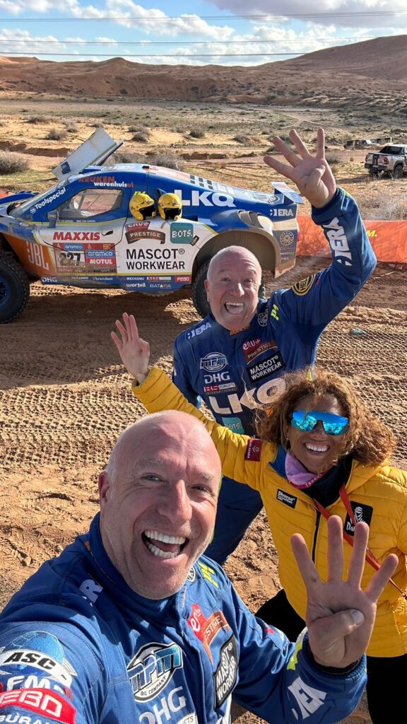 “Het was de eerste 200 kilometer heel zwaar zand en veel stuiteren”, vertelt Tom bij de finish in de buurt van Ha’il. “We kwamen een paar keer niet omhoog tegen een duin, zo zwaar was het zand. Dat is jammer en daar hebben we wat tijd laten liggen.”