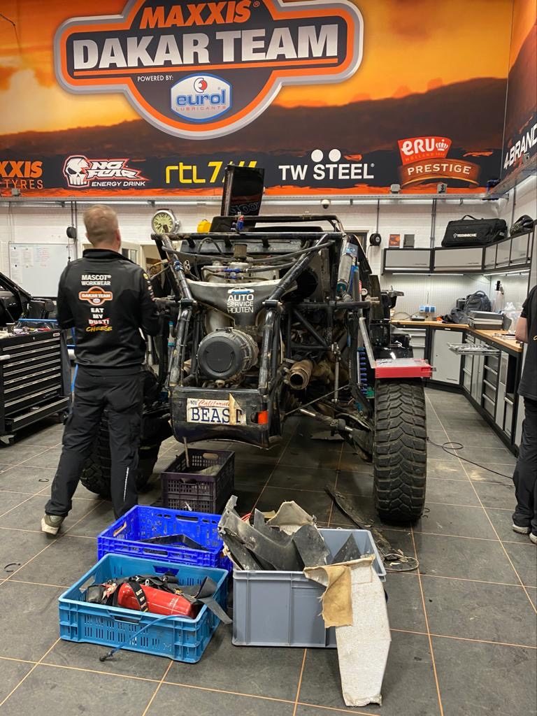 Daarnaast wordt de Beast 3.0 deels gedemonteerd, en weer op die punten opnieuw opgebouwd zodat de aanpassingen en nieuwe ideeën die de mannen “monteurs” en “Tim & Tom” tijdens de Dakar hebben bedacht kunnen worden gemaakt en worden aangepast. Want de versie Beast 3.0 heeft zich super gehouden en het heel goed gedaan maar er is altijd nog ruimte voor verbetering! Want er zijn alweer zat nieuwe ideeën voor de Beast 4.0.